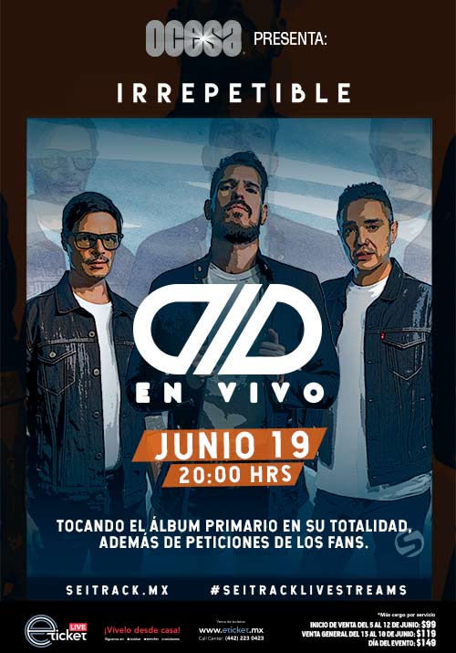 Ocesa anunció una serie de presentaciones online bajo el concepto denominado «Irrepetible: Nunca más lo volverás a ver»; las cuales inician el próximo viernes 19 de junio con DLD.
