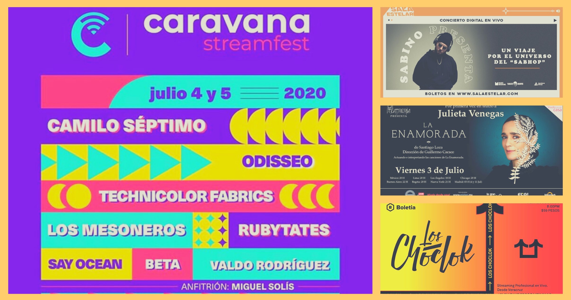 Camilo séptimo, Odisseo, Technicolor fabrics, Los mesoneros, Rubytates, Say ocean, Beta, Valdo Rodríguez, Erik Canales, Nörte, Chucho Nave, Daniel Craft, Inda Midland, Autocinema.