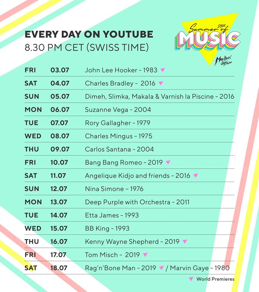 El Festival de Jazz de Montreux, uno de los eventos musicales más importantes de Europa; celebraría su 54º edición este 2020,y debido a la pandemia por el coronavirus; tuvieron que cancelarlo.