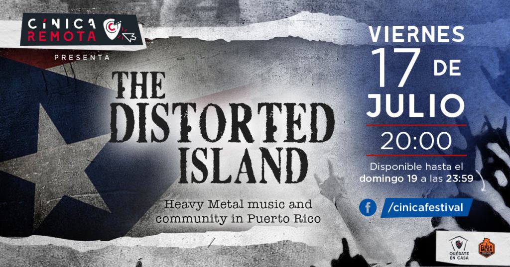 Cínica Festival de Cine de Música de México continuará con las actividades de Cínica remota, programa de transmisiones gratuitas virtuales en el marco de la contingencia sanitaria por el Covid-19, con la función especial del documental The Distorted Island: Heavy Metal Music and Community in Puerto Rico (Puerto Rico, 2015), dirigido por Osvaldo González-Sepúlveda y producido por Nelson Varas-Díaz.
