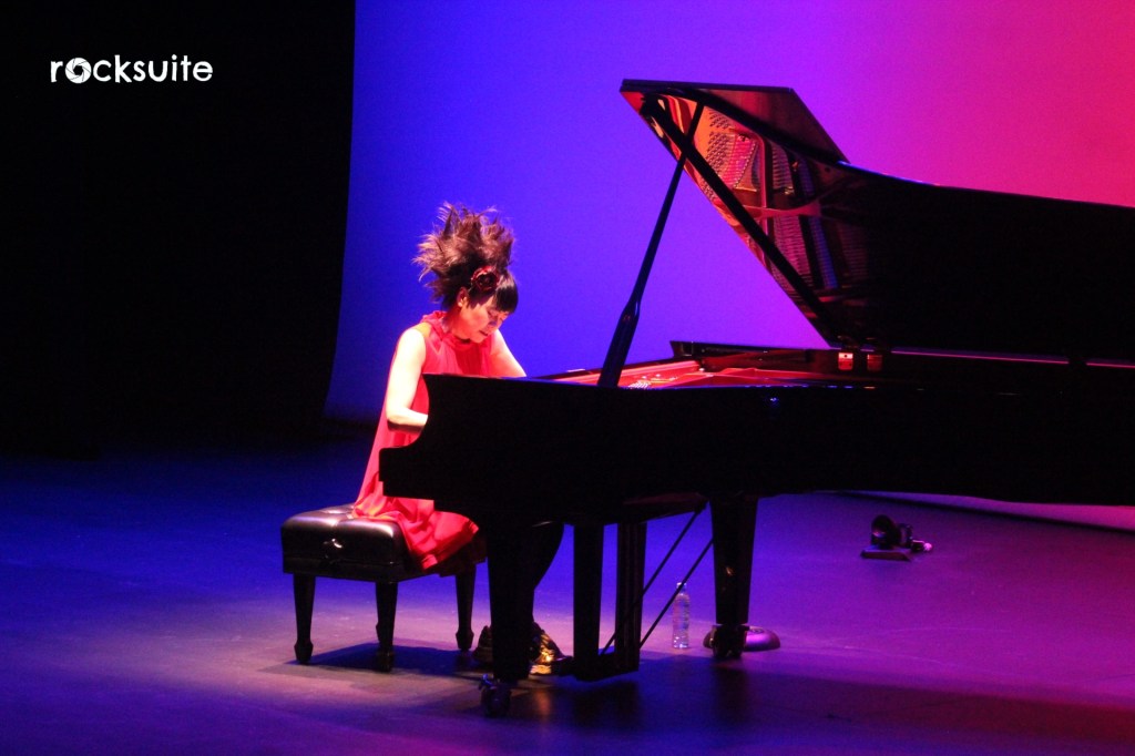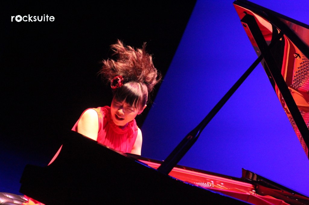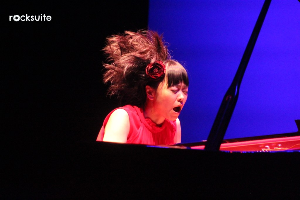 Una presentación muy enérgica donde además de fungir como pianista, Hiromi fue baterista, bajista y animadora del show.