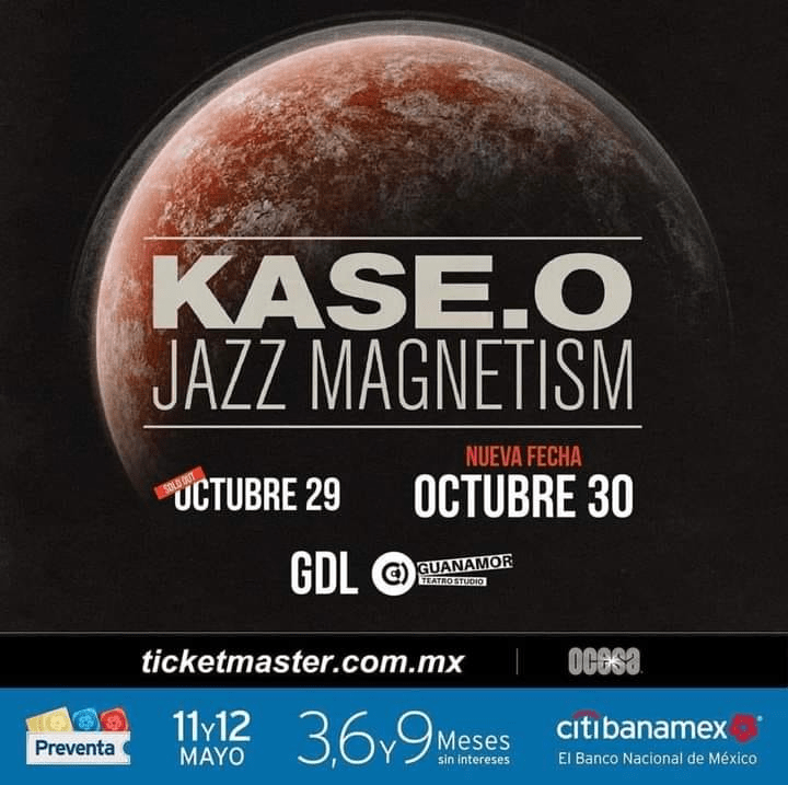 Uno de los máximos exponentes del rap en español, Kase.O, regresará a Guadalajara como parte de su gira de 10° aniversario del disco Jazz Magnetism. El rapero ibérico se presentará el 29 y 30 de octubre en el Guanamor Teatro Studio.