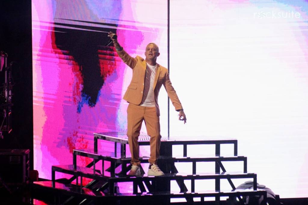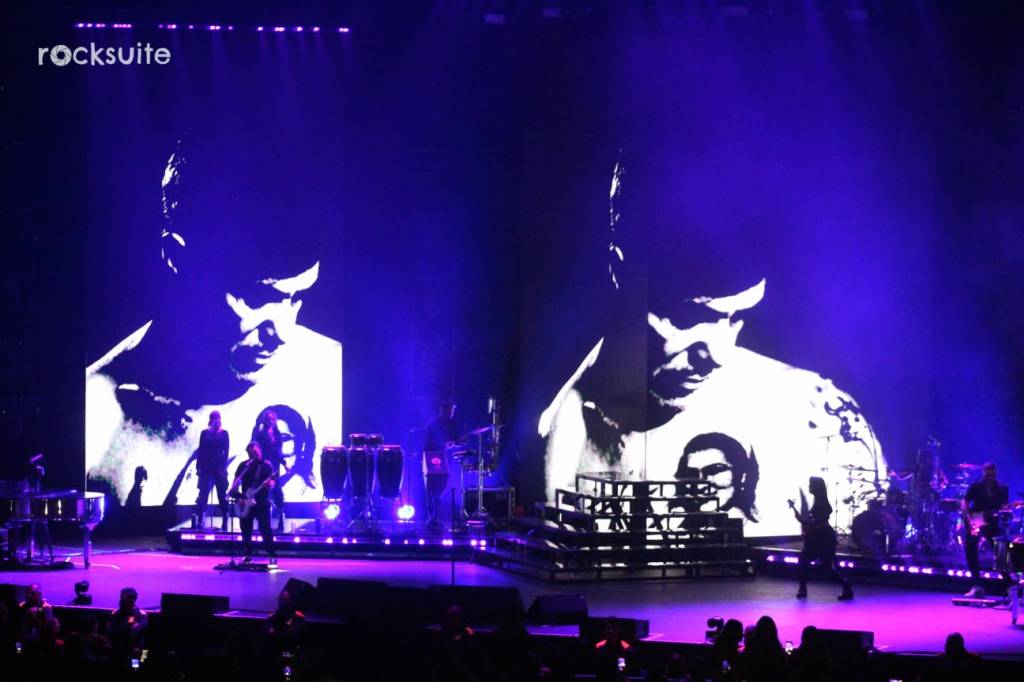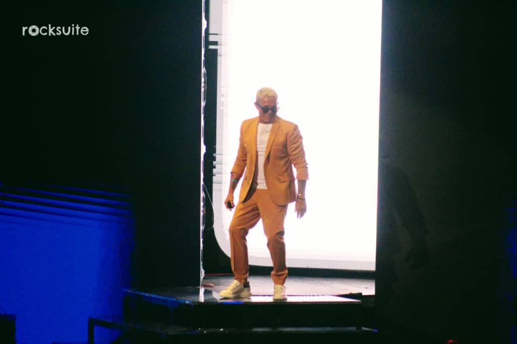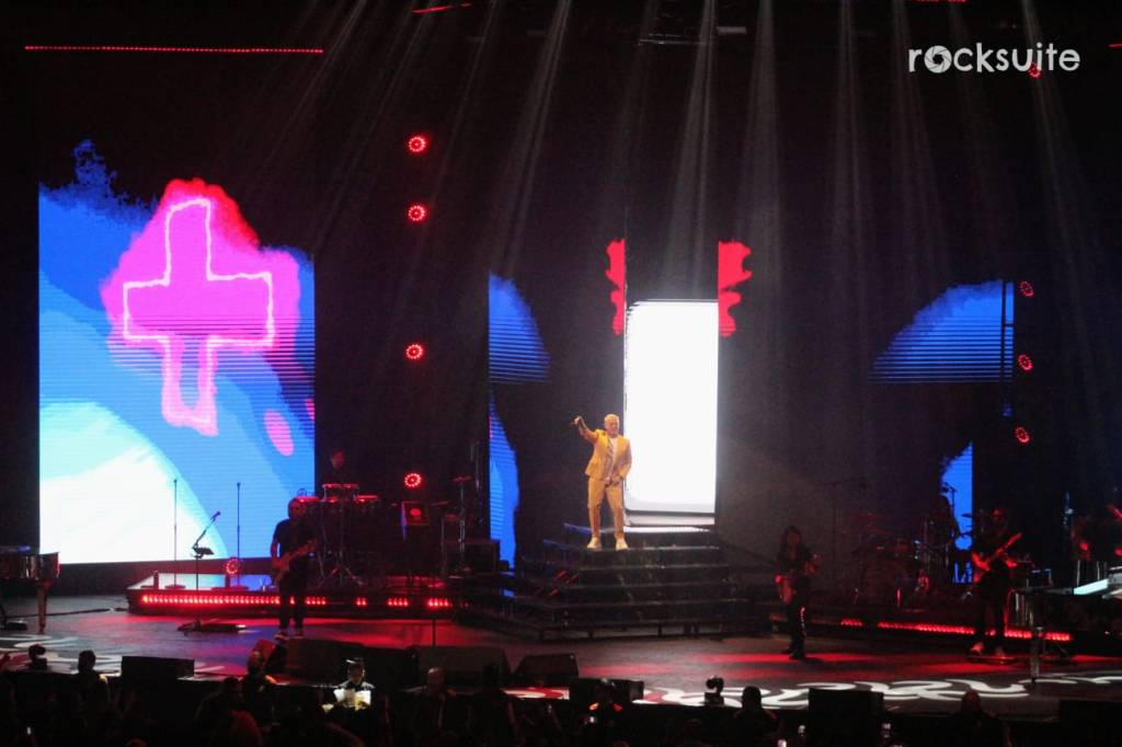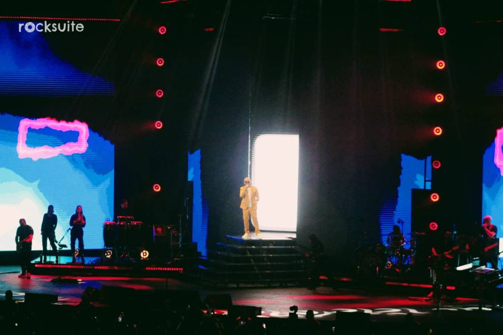 Tras 15 minutos de demora, inició el concierto acompañado de un juego de luces, visuales y una gran banda compuesta por 10 músicos, donde destacó la ejecución de mujeres en la batería, bajo, piano y coros.