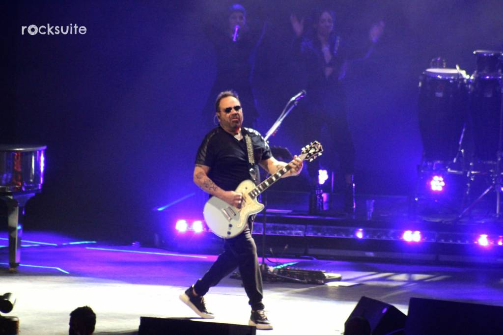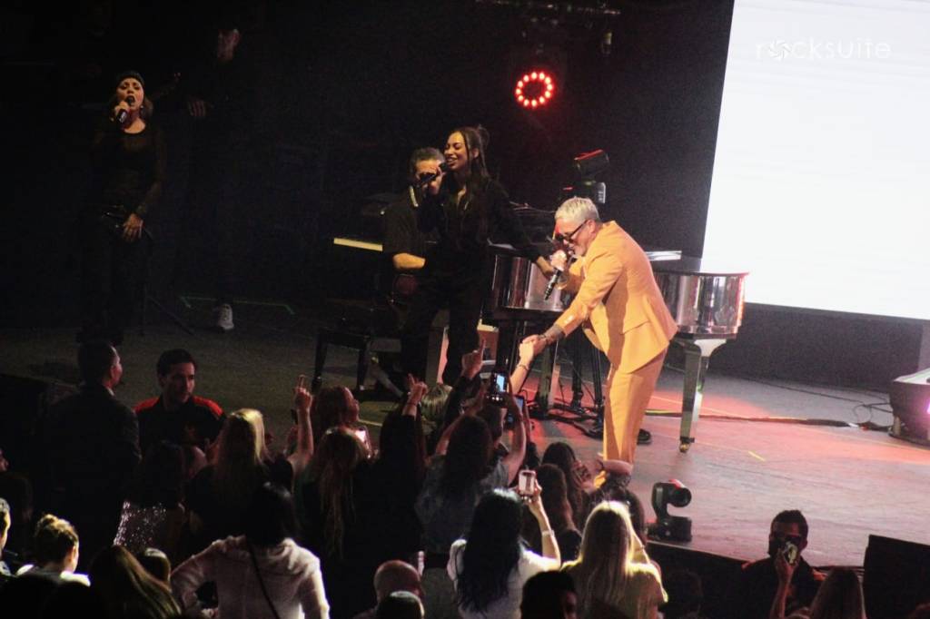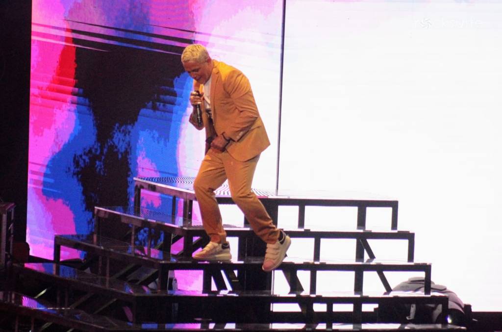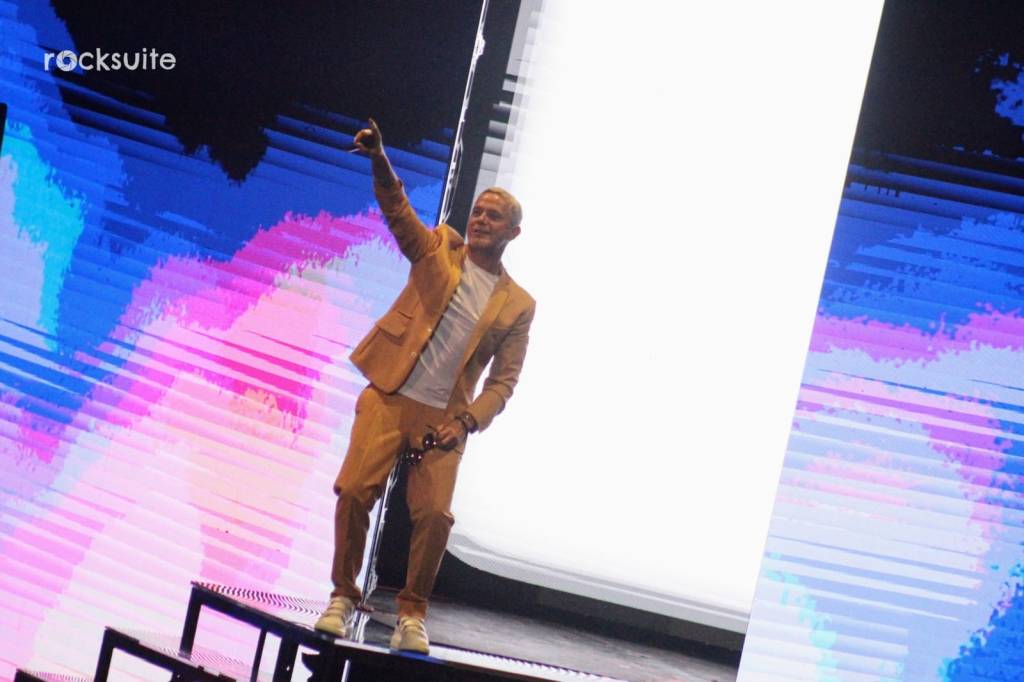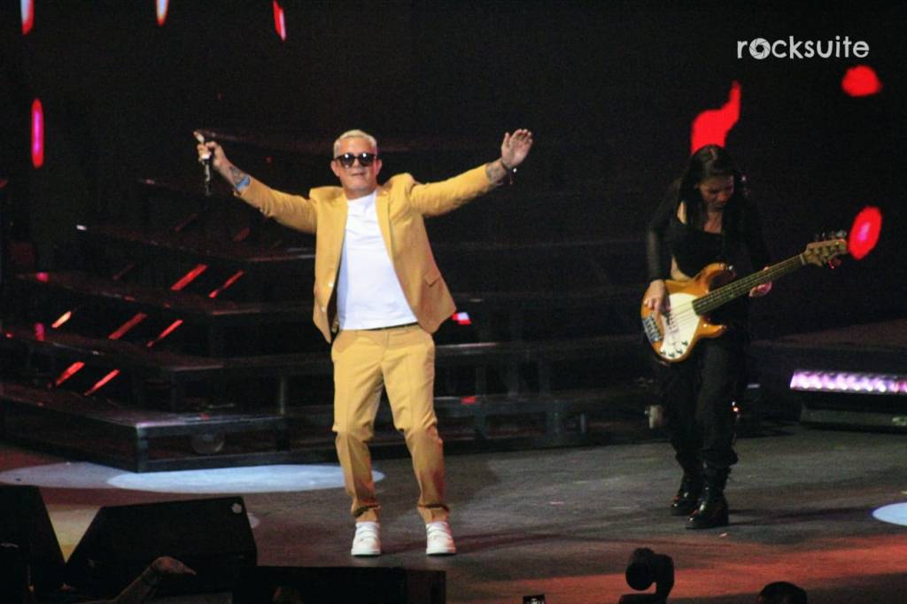 Tras 15 minutos de demora, inició el concierto acompañado de un juego de luces, visuales y una gran banda compuesta por 10 músicos, donde destacó la ejecución de mujeres en la batería, bajo, piano y coros.