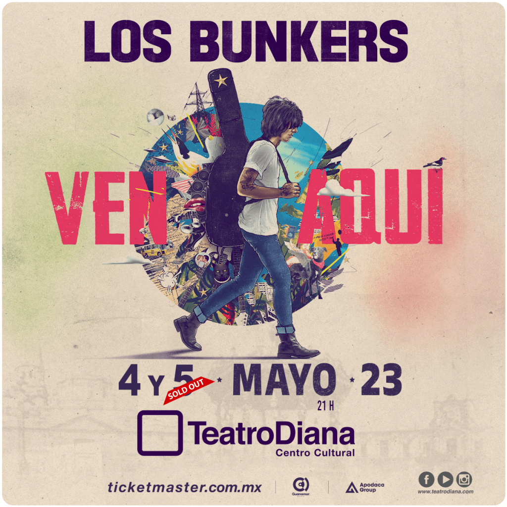 Los Bunkers están de regreso y llegan con la intensidad que siempre los ha distinguido. La banda, considerada como toda una figura del rock chileno, despierta de su receso como ave fénix dispuesta a hacer retumbar los oídos de todos sus fans. Desde su surgimiento, Los Bunkers han sido aclamados por su manera de darle tratamiento al folclore de Chile a través del rock, llevándola a ser una de las agrupaciones más importantes del país en la época actual. Con sencillos como «Bailando solo» o «Llueve sobre la ciudad» se encargaron de llegar a todos y cada uno de los rincones de México, logrando establecer una conexión muy especial con el público mexicano, mismo que desde hace años aclamaba su regreso. Hoy ya es una realidad. Después de un descanso que los separó de los escenarios por algunos años, Los Bunkers regresan recargados listos para ser el soundtrack de la noche más enérgica en la vida de sus fans.