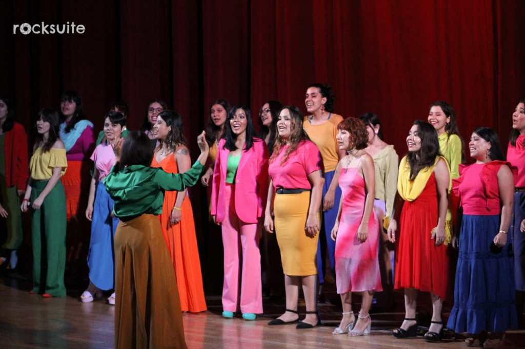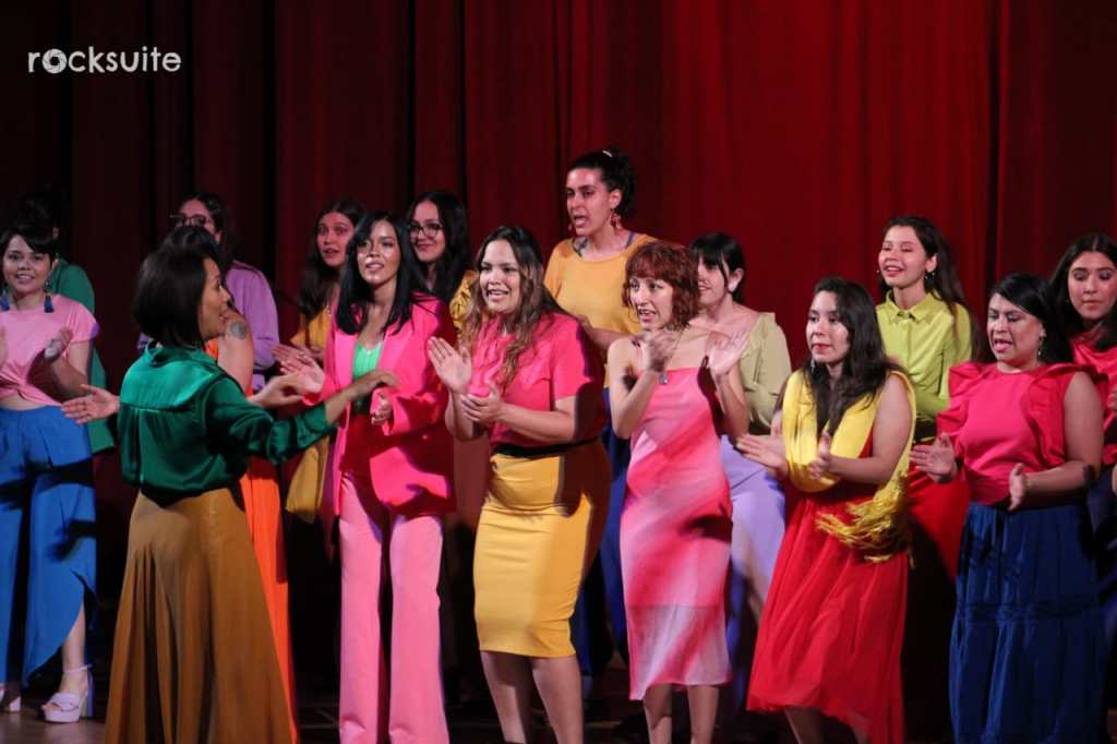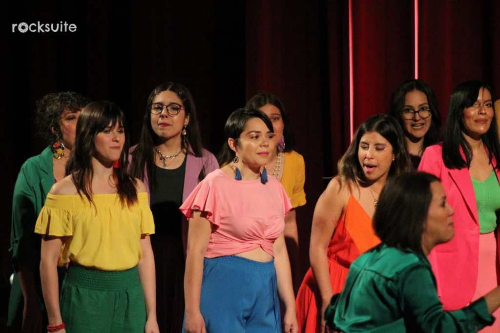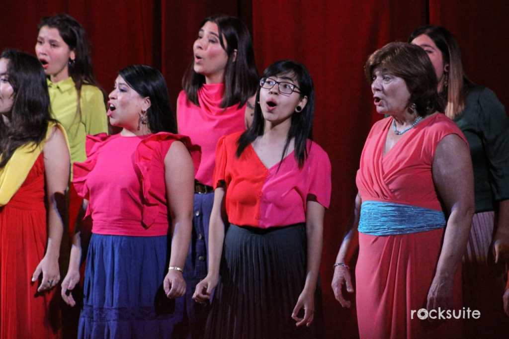 La noche comenzó con murmullos de voces del Coro Femenino Mayahuel, bajo la dirección de Wilmia Verrier Quiñones, y poco a poco se dejaron ver un grupo de mujeres entre los pasillos del teatro vestidas en colores primaverales y unas hermosas voces, haciendo resonar el teatro de una manera espectacular. Después tomando el escenario en donde la gracia y pasión de su directora dirigía a unas chicas de todas las edades en una muy emotiva y divertida presentación.