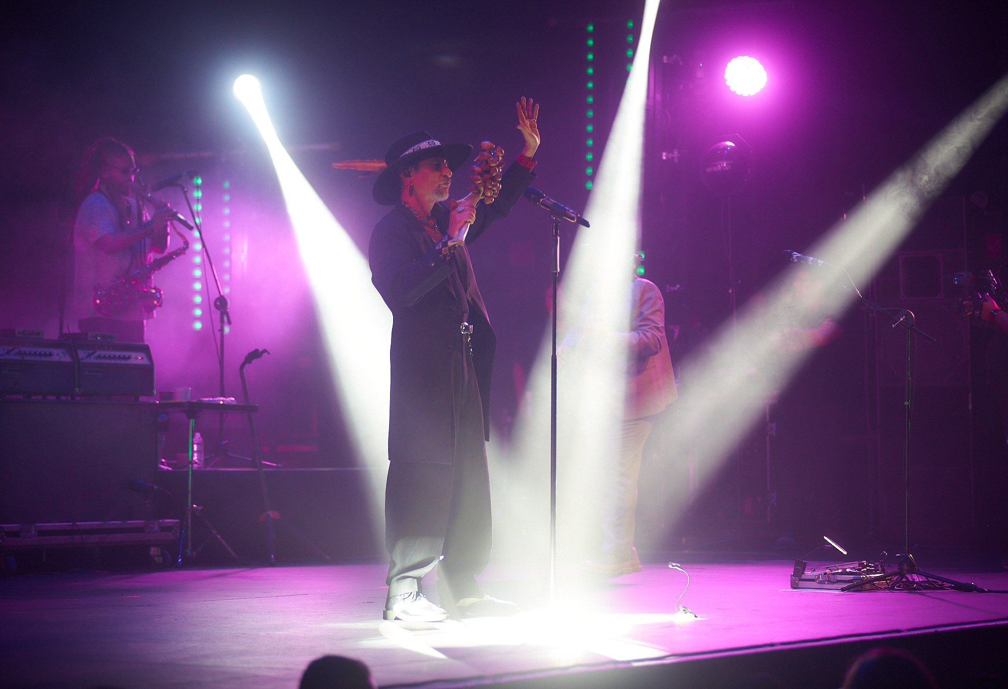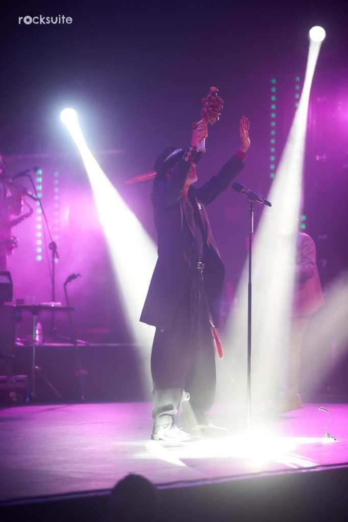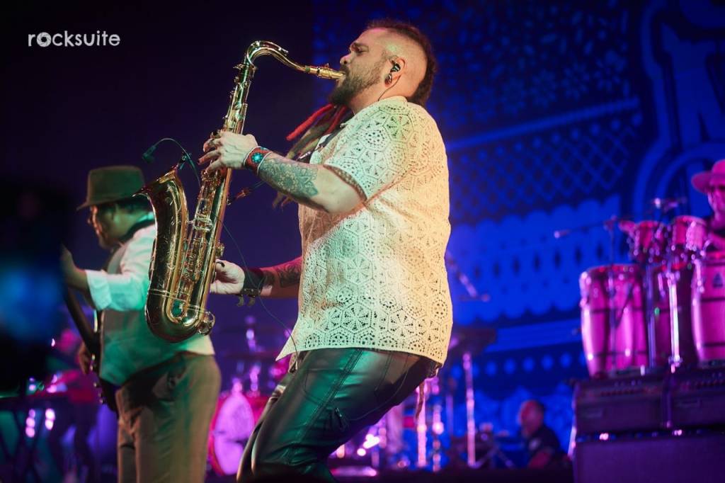 Como suelen hacerlo, iniciaron con los clásicos inciensos y el saludo a los cuatro rumbos del universo, un momento lleno de paz antes de dar comienzo a los primeros acordes de “Solín”, con las que desatan la energía de todos los asistentes y continuar con “Quinto patio Ska”. Antes de la tercera canción, Roco Pachukote invitó a los asistentes a soltar todo lo malo, lo que cargamos y nos afecta tanto, pues ya “Lo pasado, pasado” con lo que entramos en confianza y además disfrutamos de la gran versión de uno de los himnos del Príncipe de la Canción.