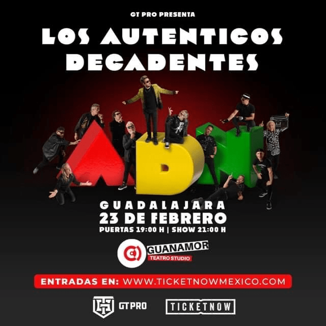 La icónica banda argentina de ska y rock alternativo, Los Auténticos Decadentes; se presentarán en el Guanamor Teatro Studio el próximo 23 de Febrero de 2024, prometiendo una noche memorable repleta de música y diversión sin límites.