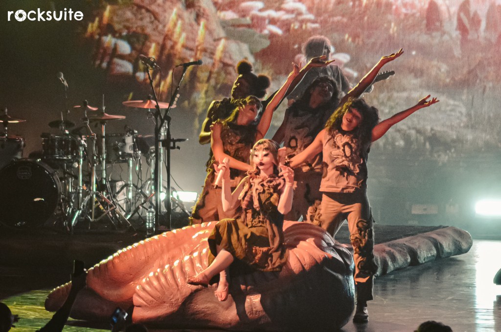 Melanie Martinez con «Death» tomó el escenario y de inmediato nos sumergió en su universo encantado. Canciones como «Void,» «Tunnel Vision,» y «Spider Web» resonaron en el auditorio, y cada palabra era coreada por los fans que parecían conocer de memoria cada letra. La conexión entre artista y público era palpable, y juntos crearon una atmósfera única.