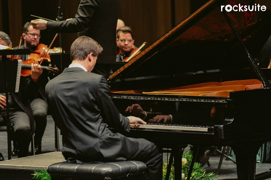 La primera parte del concierto culminó con el destacado pianista Vladimir Petrov tomando el escenario para interpretar el Concierto de Piano No. 1. Desde los primeros acordes, Petrov demostró una destreza técnica asombrosa, fusionando virtuosismo y sensibilidad musical con cada pulsación de las teclas. Su ejecución magistral mantuvo a la audiencia en un silencio reverencial, intercalado ocasionalmente por aplausos espontáneos que no podían ser contenidos ante la brillantez del pianista.