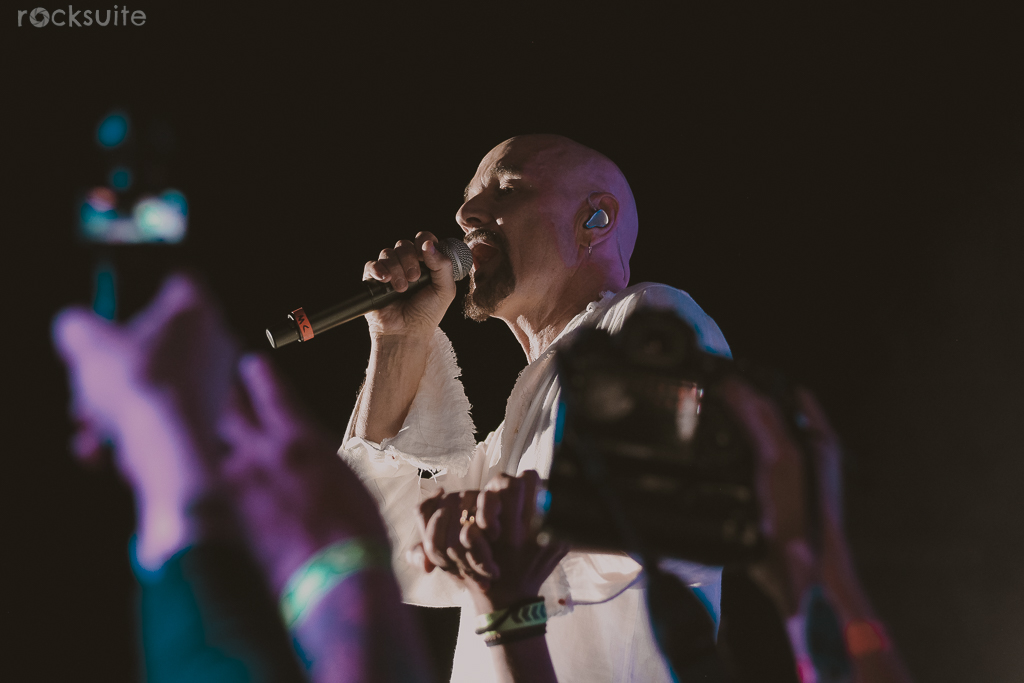 Sin embargo, los momentos más emocionantes llegaron con las canciones icónicas y más esperadas de la banda. Temas como «Just Like Fred Astaire», que resultó ser una grata sorpresa en el setlist, «Born of Frustration», y el clímax del concierto con «Say Something», donde Tim Booth caminó por una de las barras del lugar, acercándose aún más a sus fans mientras interpretaba este ya clásico tema, uno de los más coreados y por supuesto, capturados desde los celulares.