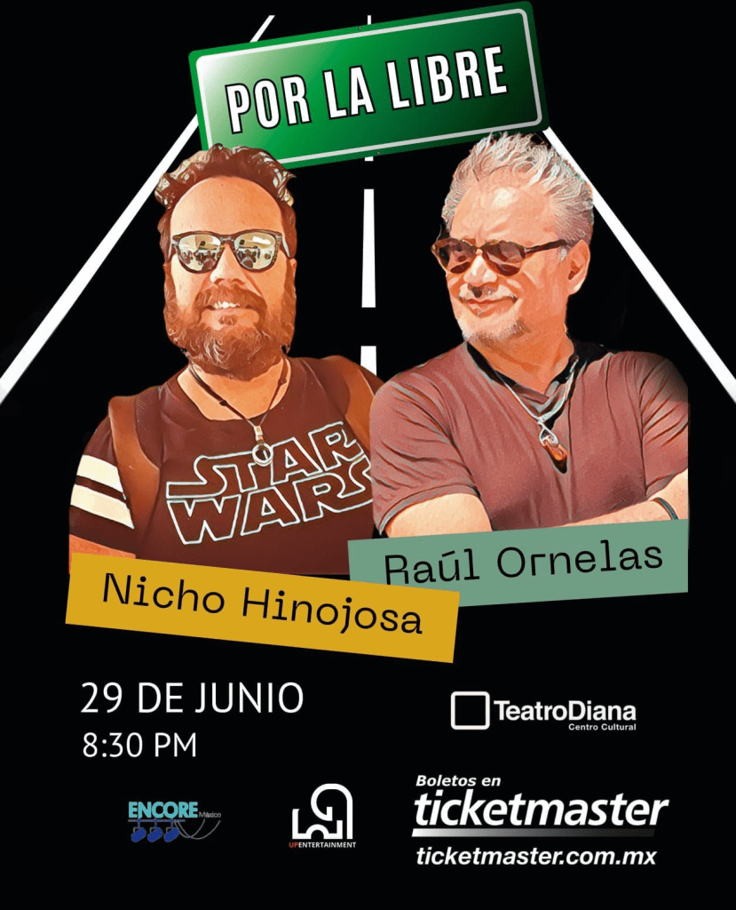 Los cantautores Nicho Hinojosa y Raúl Ornelas unen su talento en una noche bohemia llena de éxitos en la que podrás disfrutar de canciones como «Un buen perdedor», «Hasta la camisa», «Y como es el», «Manias», «Así son ellas», y «Que voy a hacer con mi amor». No te cansarás de cantar durante esta noche única.
