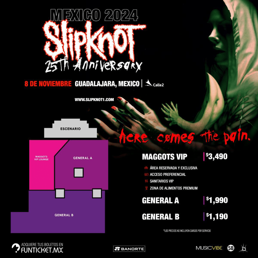 Slipknot regresa a Guadalajara estrenando máscaras, nuevo baterista (Eloy Casagrande, ex Sepultura) y celebrando sus 25 años de trayectoria con su gira «Here comes the pain».