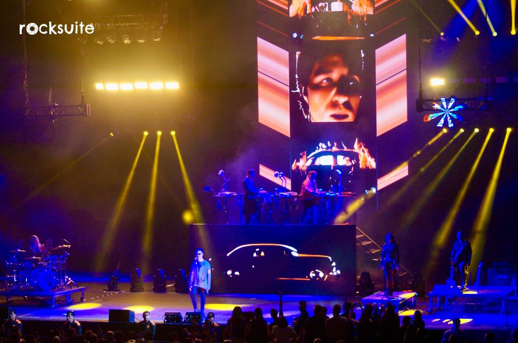 Más allá del sonido, los visuales jugaron un papel fundamental: proyecciones futuristas, ochenteras, espaciales, que parecían diseñadas para acompañar cada emoción del público. Luces, pantallas y atmósferas envolventes reforzaron esa estética característica de Moenia, en la que conviven lo retro y lo moderno sin contradicciones.