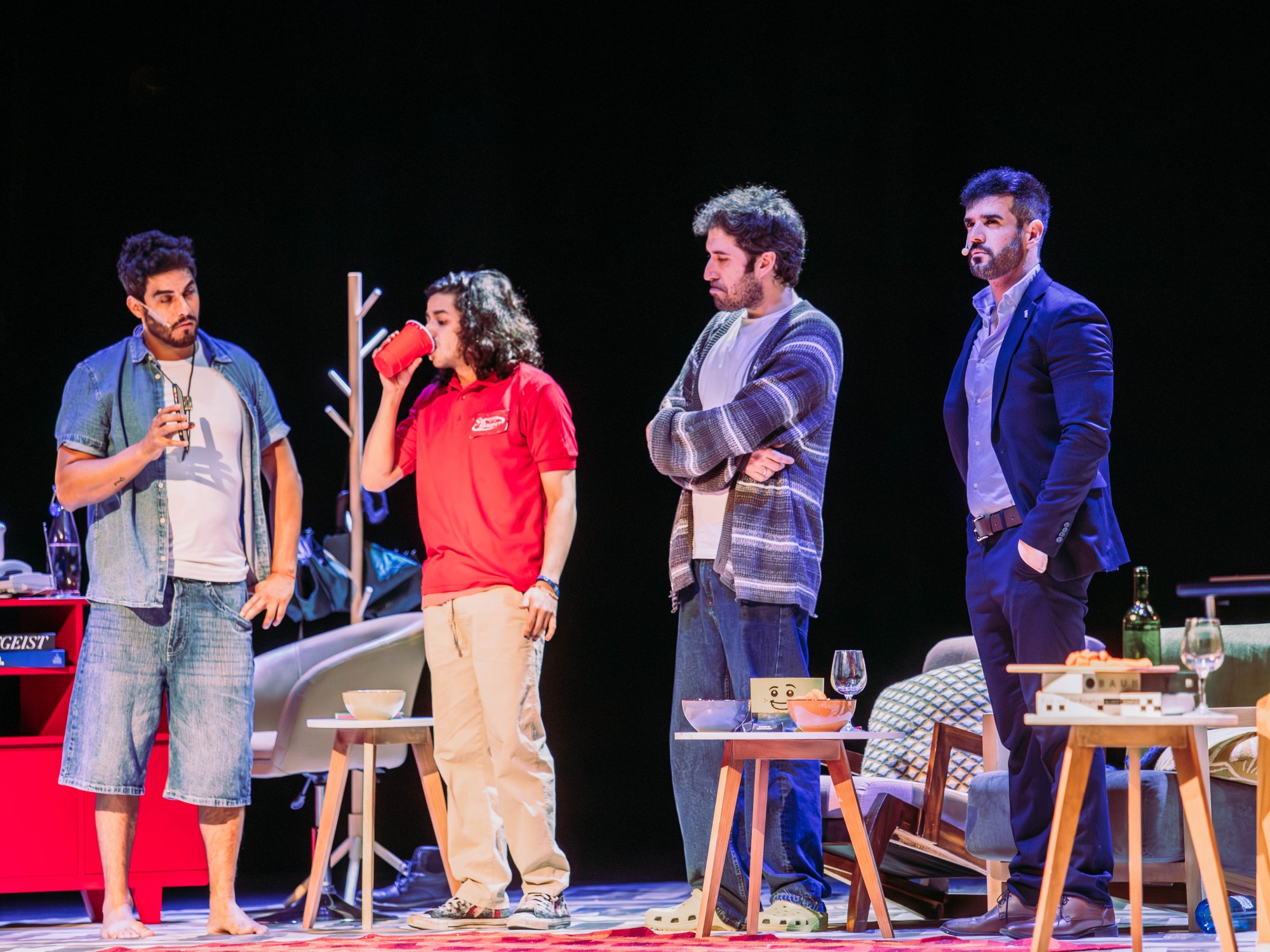 La obra arranca como una cena casual, llena de bromas y complicidad, pero poco a poco revela la verdadera razón de la reunión: Martín, interpretado con gran vulnerabilidad por Fernández, confiesa su anhelo de ser padre y lanza una petición que cambia por completo la dinámica. Lo que parecía una noche de camaradería se transforma en un campo de batalla de emociones: verdades incómodas, lealtades cuestionadas y secretos que nadie quería sacar a la luz.