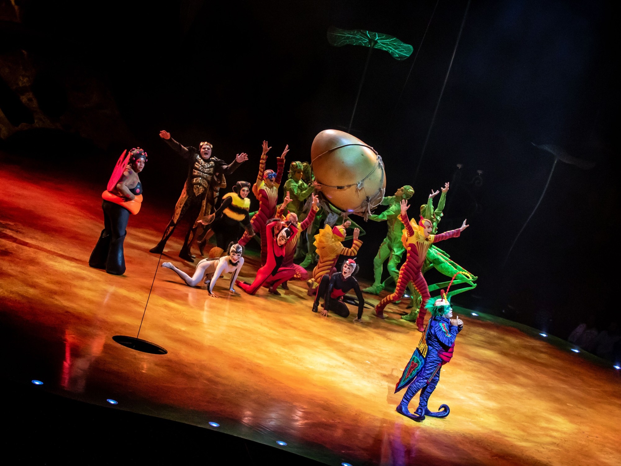Visualmente, el espectáculo es una auténtica joya. La escenografía combina estructuras orgánicas y proyecciones luminosas que recrean un hábitat natural en constante movimiento. Las luces y los colores cambian como si siguieran el ritmo de la vida misma, envolviendo al público en una atmósfera mágica que oscila entre la ternura y el asombro. El vestuario, diseñado con un nivel de detalle extraordinario, fusiona el arte del disfraz con la elegancia de la moda contemporánea: cada traje no solo imita la anatomía de los insectos, sino que también resalta la personalidad y el espíritu de cada especie.
