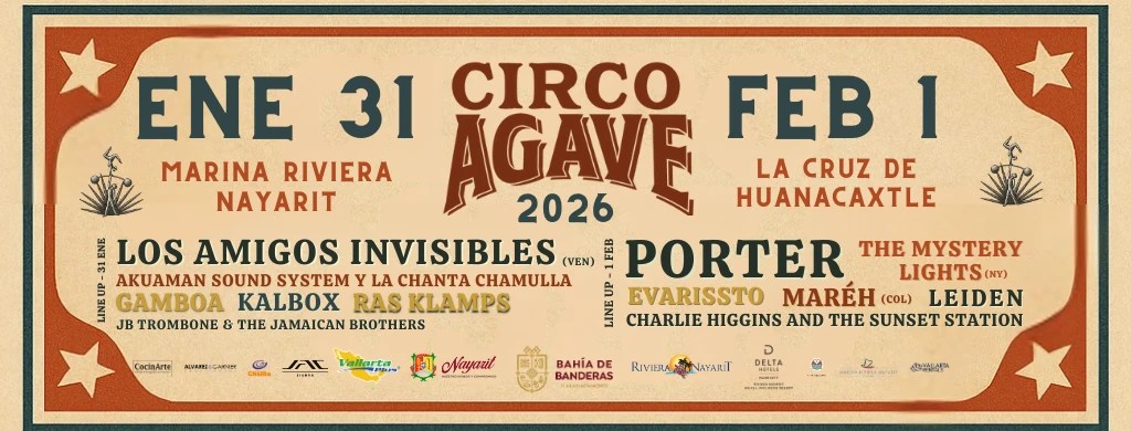 El año comienza con celebración en la costa del Pacífico. Los días 31 de enero y 1 de febrero, la Marina Riviera Nayarit, en Bahía de Banderas, será la sede del Circo Agave 2026, un festival que fusiona música en vivo, espectáculos circenses, gastronomía y destilados de agave en un entorno privilegiado frente al mar.