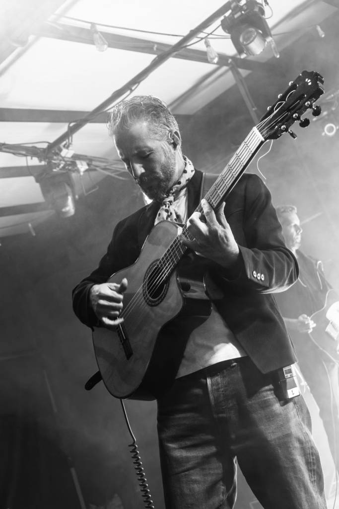 El dúo apareció en escena no con la solemnidad de los concertistas, sino con la eficacia de quienes saben que han venido a encender una maquinaria de hedonismo calculado. Desde los primeros acordes de «Ole Maca» y la cadencia envolvente de «Shangri La», quedó patente el artefacto: una guitarra flamenca que llora verdades antiguas, inmediatamente secuestrada por una producción electrónica pulcra, casi quirúrgica. Es un truco que, analizado en frío, parecería un despropósito turístico, pero que en vivo, y hay que admitirlo con la ceja ligeramente levantada, funciona con una potencia irrebatible.