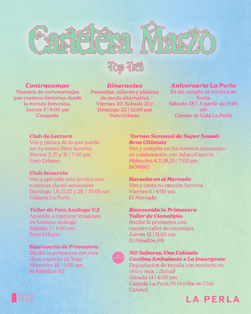 Marzo llega con una agenda que confirma a Centro de Vida La Perla como algo más que un recinto cultural: un foco de encuentro donde conviven ideas, estéticas y formas distintas de habitar la ciudad. A lo largo del mes, su programación apuesta por el diálogo creativo, la identidad y la celebración colectiva.